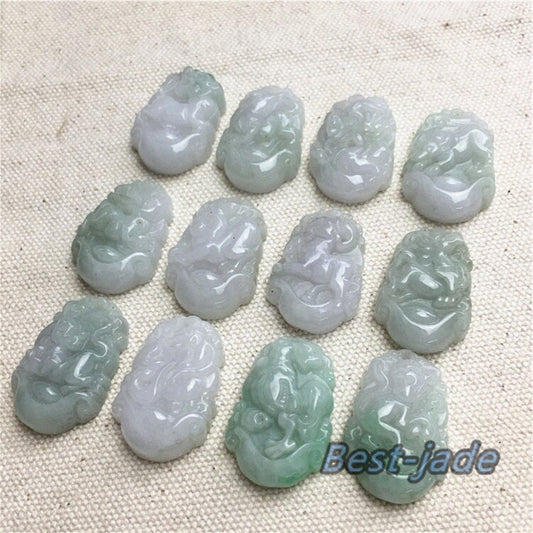 1 Set zertifizierter Jadeit, chinesischer Zwölf-Sternzeichen-Grün-Eis-Burma-Jadeit, natürlicher Jade-Anhänger der Güteklasse A, Halsketten-Anhänger zum Selbermachen