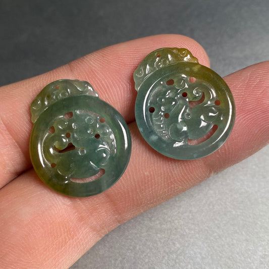 1 Paar Vintage Drache Natürlicher transparenter Guatemala Jadeit Anhänger Grade A Jade Blauer Edelstein Männer Drache Guatemaltekischer Jadeit Anhänger