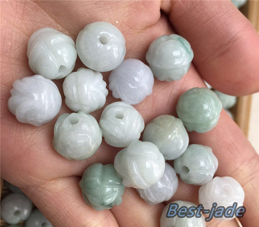 100 STÜCK (Großhandel) 6*9mm Cucurbit Form Grade A ICY Jade Burma Flache Rundheit Perlen Perle Chinesisch geschnitzt, Myanmar Jadeit grüne Jadeware