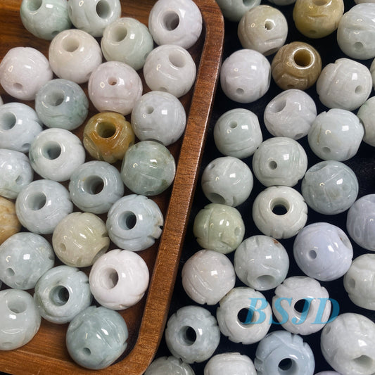 100 STÜCK 13mm Echt Grade A Jade Drachenperle Burma Jadeit Weiße Jade Ohrringe Kugel handgeschnitzt DIY Schmuck Geschenk
