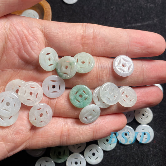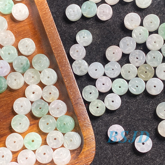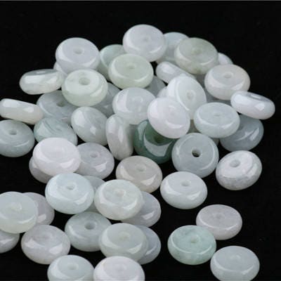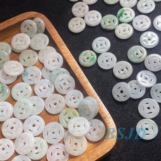 100PCS (Wholesale) 8-12mm Grade A ICY Jade Jadeite Flat Roundness Beads Ball GREEN WHITE Button peace buckle Chinese Best-jade