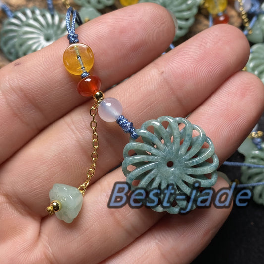 Großhandel ausgehöhlte Blumen Handyband Güteklasse A Jade Grüner Jadeit Perlen Blumenbeutel Hängeanhänger Typ A Jade Eis Myanmar Jadeit Geschenk