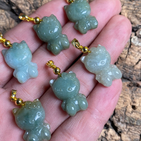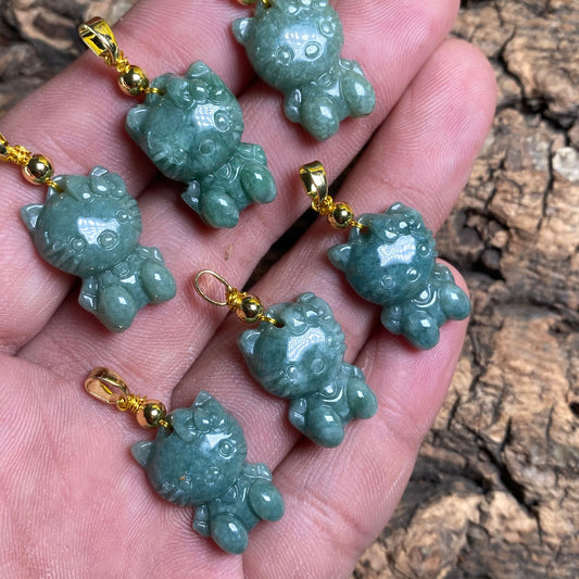Großhandel Grade A Jade Hallo süße Kitty Katze mit vergoldetem Ösenanhänger Natürliche grüne Jade Burma Jadeit Perlen Cartoon Ohrringe Geschenk