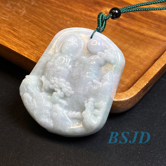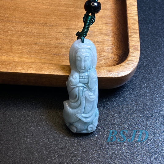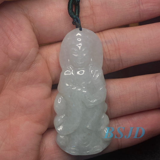 Großhandel KWAN YIN Guanyin Natur Grade A Jade ICE Jadeit Myanmar Jadeit Anhänger Halskette Buddha Statue Schnitzerei