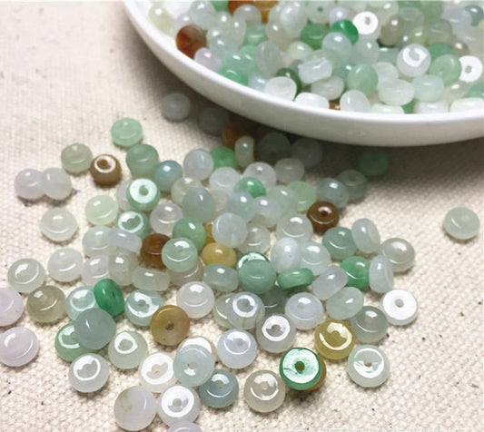 100 Stück Großhandel 4*6mm Donut Grade A Jade Burma Jadeit Flache Rundheit Perlen Grüne Jadeware Perle DIY Jade Spacer Ohrringe Kügelchen n.