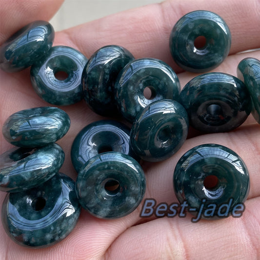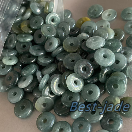 10PCS donut Pendant Natural Grade A Green Jade ICE Jadeite Flat Round Beads doughnut baby lady necklace earrings Burma Myanmar Jadeite A