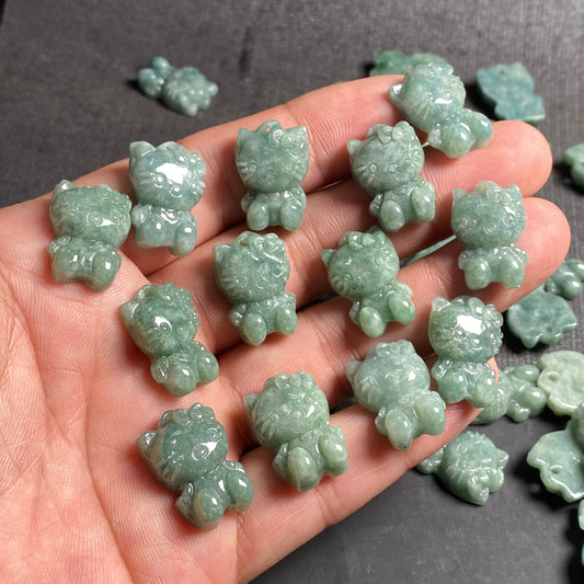 Naturguter grüner Jade-Hallo-süßer Kitty-Cat-Anhänger der Güteklasse A. Natürlicher grauer Jade-ICE-Burma-Jadeit-Cartoon-Perlen-Ohrring-Tropfen-Geschenk-Anhänger