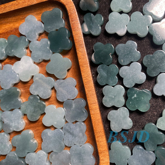Vierblättriges Kleeblatt Grade A Jade Blauer Jadeit ohne Loch Perlen Blumenanhänger Typ A Jade Ice Guatemala Jadeit DIY Halskette Ohrringe Geschenk