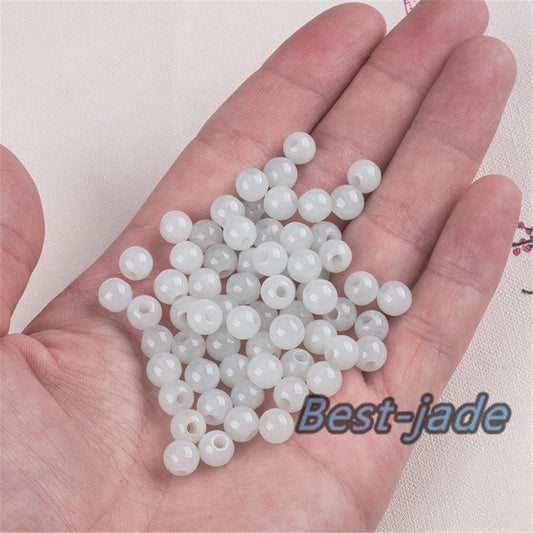 100PCS 5-13mm großes Loch Grade A Jade Perle Burma Jadeit weiße Jade Ohrringe Kugel handgeschnitzt DIY Schmuck Geschenk