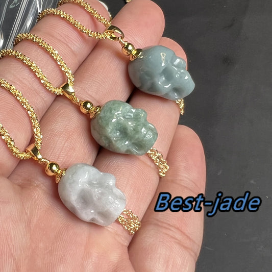 3-farbiger Totenkopf-Form, natürlicher Jadeit, grüner Jade-Anhänger, blaue Jadeperlen der Güteklasse A, Burma-weiße Jade, Halloween-Geschenke, 14 Karat vergoldetes Kautionsgeschenk