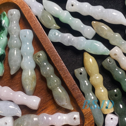30 Stück chinesischer Schriftpinsel-Stift-Anhänger, grüne Jade, Eis, Burma-Jadeit-Perlen, Myanmar-Jadeit, Kindergeschenk