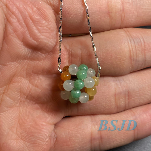 Wunderschöne Kugelform, Güteklasse A Jadeit, natürliche ICE-grüne Burma-Jadeperle, Damenanhänger, Schmuckhalskette, Stein vom Typ A mit Splitterkette aus 925er Silber