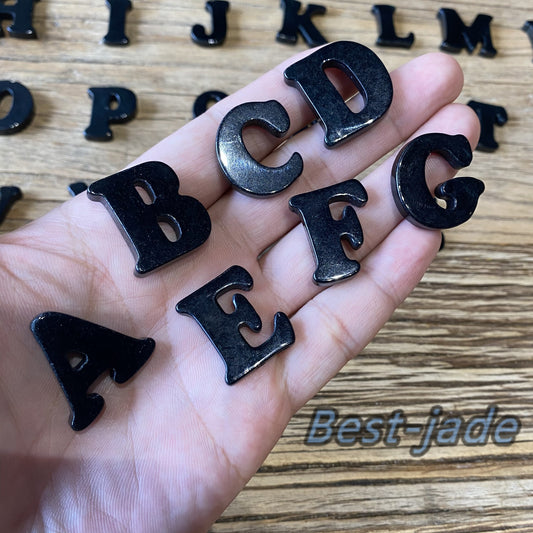 Custom jadeite Name engraved pendant alphabet beads black jadeite Grade A jade letter bead special birthday jade gift jewelry necklace