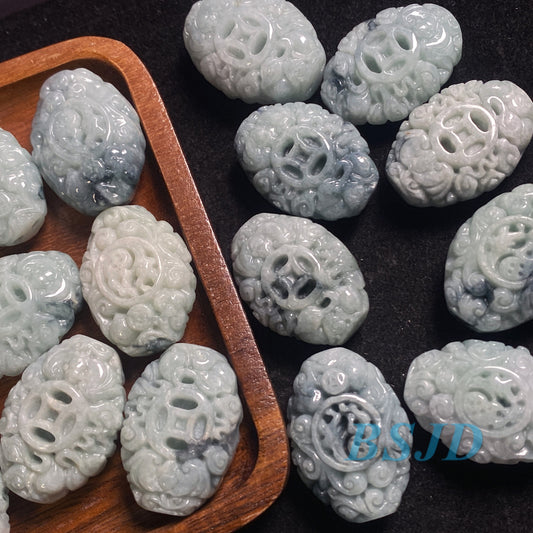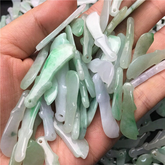 10 Stück Großhandel Messerform Hohl Grade A ICY Jade Burma Flache Rundheit Perlen Perle Chinesisch geschnitzt, Myanmar Jadeit