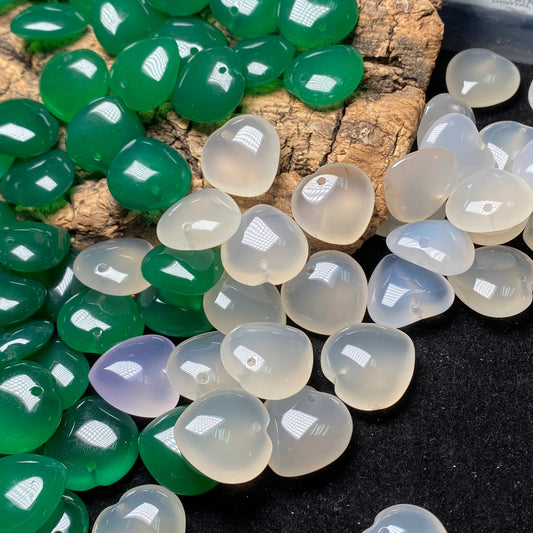 10PCS Herz Anhänger natürliche grüne A Jade EIS Achat Herzform Perlen Baby Dame Halskette Ohrringe reine Jade Schmuck Geschenk
