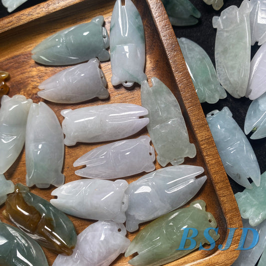 10 STÜCK (Großhandel) Zikade Anhänger Natur Grade A Grüne Jade ICE Jadeit Burma Flache Rundheit Perle Chinesisch geschnitzt, Myanmar Anhänger