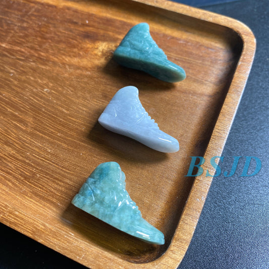 3 Farben Sneaker Mini Hip-Hop Natural Grade A Jade Jadeit 3D Sportschuh Ohrringe Perle handgeschnitzt Myanmar Jade Anhänger Halskette Jade Geschenk