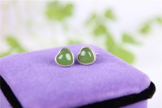 Herz-Ohrstecker, natürliche Nephrit-Ohrringe, kanadische Jade, 925S, Grünstein, BC-Jaspis, NZ-Jade, Maori, Pounamu-Ohrringe, Oreille-Clou, Brincos