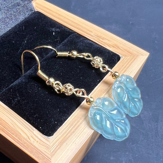 Natürlicher Jadeit, transparente Blatt-Ohrhänger aus Jade mit vergoldeter Öse, Burma-Jade, Güteklasse A, Jade-Ohrring, Jadeperlen, Schmuck, Geschenk für Sie
