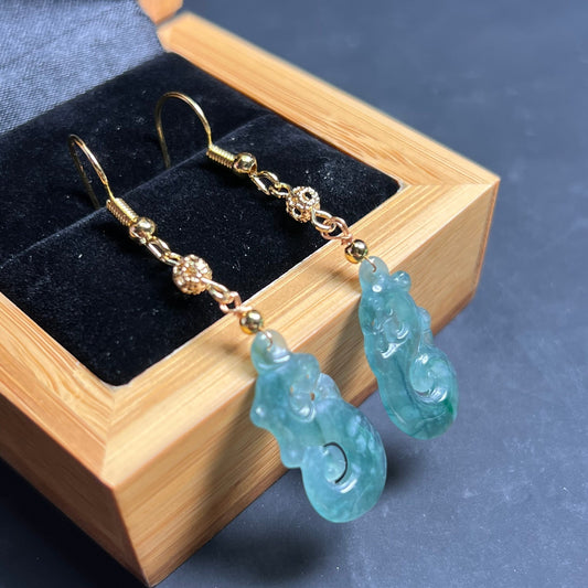 Vintage Drache Natürlicher Jadeit Transparente Ohrhänger aus Jade mit vergoldeter Öse Burma Jade Grade A Jade Earbob Schmuck Geschenk für Sie