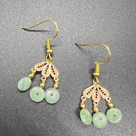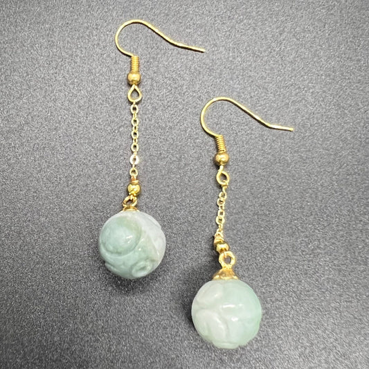 Natural jadeite Dragon bead eardrop jade Earrings with gold plated bail Burma Jade Grade A jade earbob jade loose beads Jewelry gift for her
