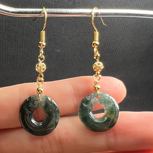 Vintage Drachen Donut Natürlicher Jadeit Transparente Ohrhänger mit vergoldeter Öse Blaue Jade Grade A Jade Ohrhänger Schmuck Geschenk für Sie