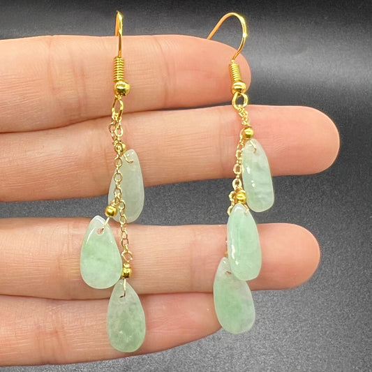 Natürlicher Jadeit, transparente Ohrtropfen-Jade-Ohrringe mit vergoldeter Öse, Burma-Jade, Güteklasse A, Jade-Ohrstecker, lose Perlen, Schmuck, Geschenk für Sie