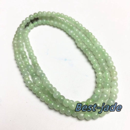 Hellgrüne natürliche Jade der Güteklasse A. Handgeschnitzte Halskette aus Burma-Jadeit. Runde Perlengröße: 3,5 x 3,5 mm. Grüner Edelstein