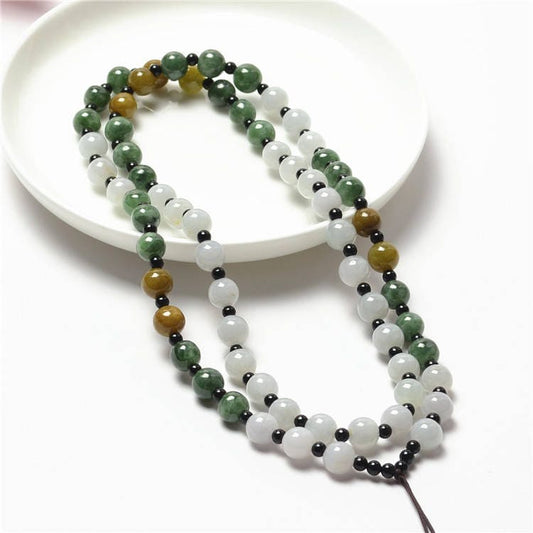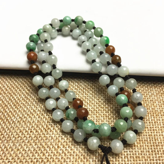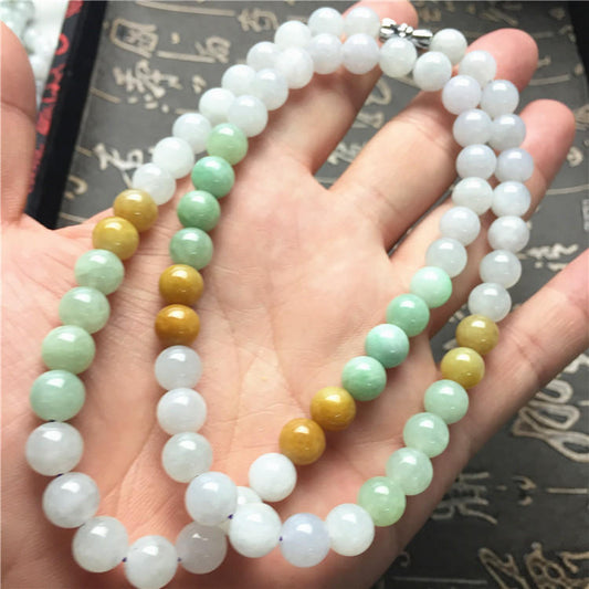 Zertifizierter natürlicher Jadeit der Güteklasse A. Handwebschnur. Handgeschnitzte Halskette. Mädchenkette. Runde Perle. Grüner Edelstein. Burma 三彩珠链