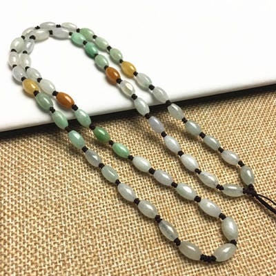 Zertifizierte natürliche Jade der Klasse A und handgeschnitzte Halskette Mädchenkette Jadeit Runde Perle Größe: 7 * 4 mm Grüner Edelstein Burma 三彩珠链
