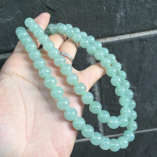 Zertifizierter natürlicher Jadeit der Güteklasse A. Handwebschnur. Handgeschnitzte Halskette. Mädchenkette. Runde Perle. Größe: 8 x 8 mm. Grüner Edelstein aus Burma