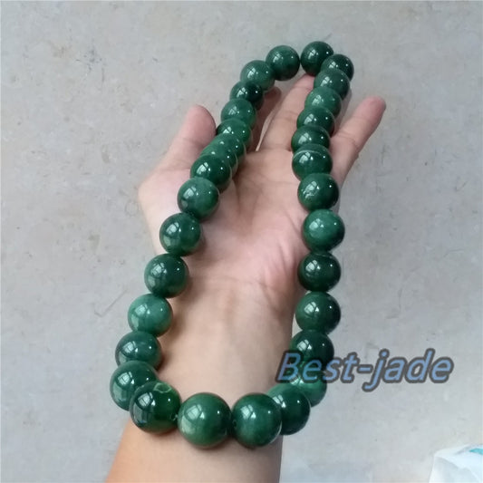 BIG 20mm Nephrite Green Canadian Jade Beads Necklace Pounamu NZ Jade Jasper Ball Parure Men's Womrn lady Man chain