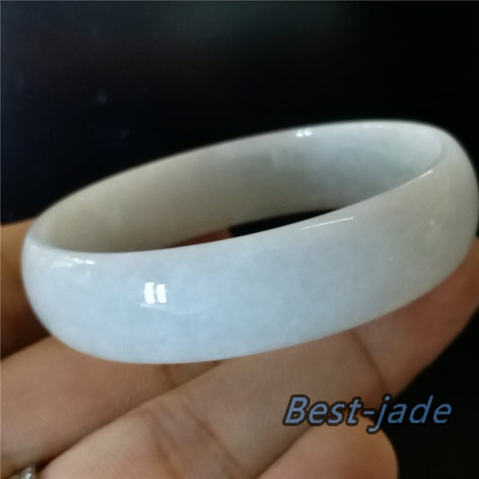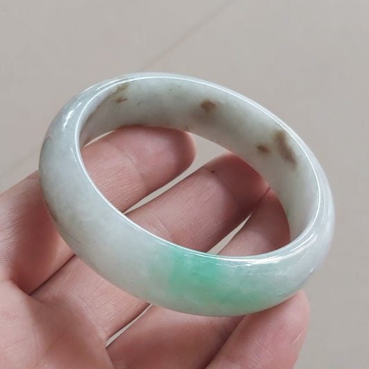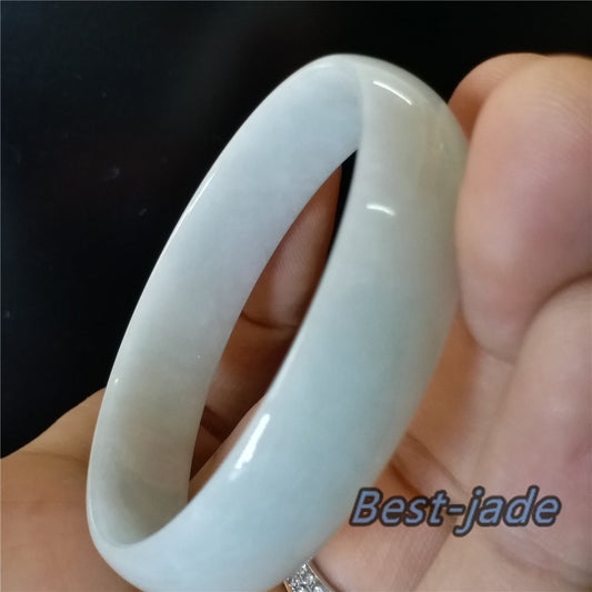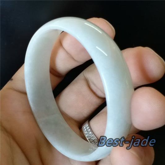 53.8mm Natural Burma Jadeite Green Grade A ICE Jade Flat Bangle Lady Bracelet Girl Chain hermes 翡翠A货手镯 082