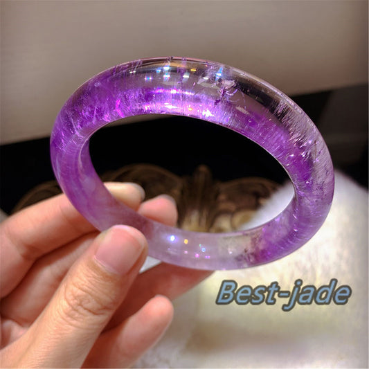 54–62 mm Großhandel natürlicher Amethyst, runder Armreif, Amethyst-Armband, durchscheinende lila Quarz-Lavendel-Kristallkette, ein Jadestein-Geschenk
