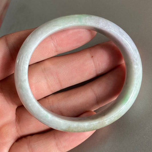 53.9mm Natural Grade A ICE Jade Genuine Green Burma Jadeite Flat Bangle Lady Bracelet Girl Chain 翡翠A货手镯 096