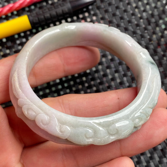 54.5mm Natural Green Grade A Jade Carved Round bangle Myanmar jadeite Lady Bracelet Type A stone female bangle