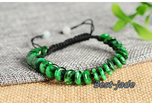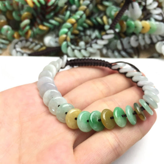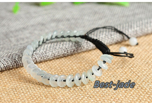 Ice Jade Natural Grade A Jadeit Handgeschnitzte Myanmar Jade Donut Perlen Armreif Armband Kette Burma Stein Armband Schnur Seil