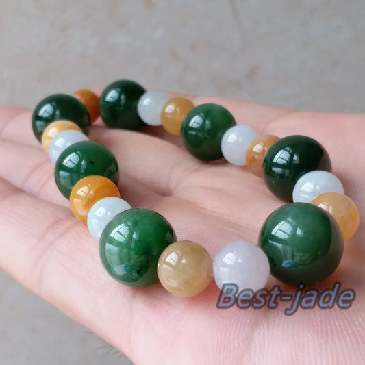 Nephrit-Jadeit und gelbe Jade, 12 mm, Güteklasse A, grüner kanadischer Jade-Perlen-Armreif, Pounamu NZ Jade-Jaspis-Kugel, Herren-Damenkettenstrang