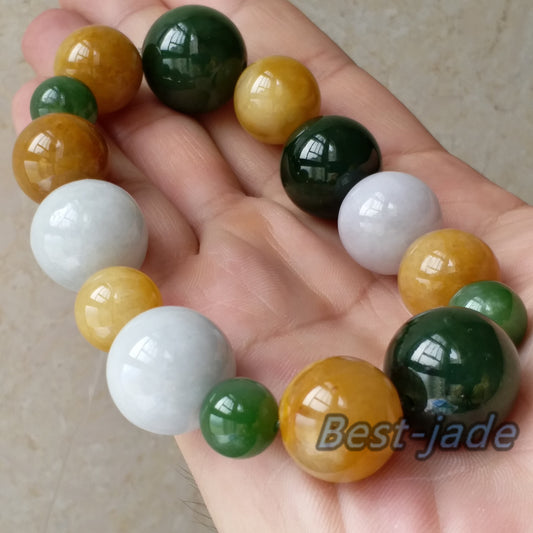 Nephrit-Jadeit und gelbe Jade, 18 mm, Güteklasse A, grüner kanadischer Jade-Perlen-Armreif, Pounamu NZ Jade-Jaspis-Kugel, Damen-Herren-Strang