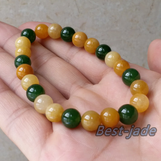 Nephrit-Jadeit und gelbe Jade, 8 mm, Güteklasse A, grüne kanadische Jade-Perlen, Armreif, Pounamu NZ Jade-Jaspis-Kugel, Damen-Kettenkette für Damen