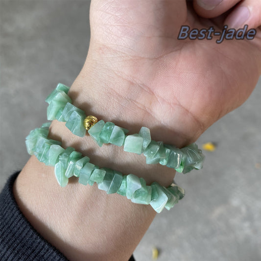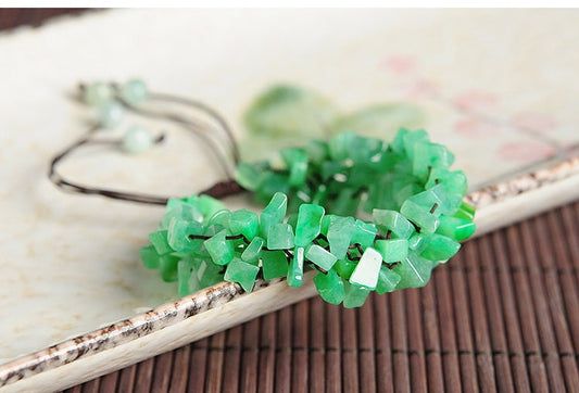 Natürliche grüne Jade der Güteklasse A, Burma-Jadeit-Chip-Perle, handgeschnitztes Damen-Armband, Mädchen-Kette, grüne Jade-Kette, Schmuck, Jade-Geschenk