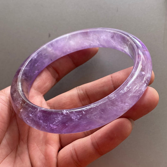 Riesige Größe, 78,6 mm, natürlicher Amethyst, runder Armreif, Amethyst-Armband, durchscheinende lila Quarz-Lavendel-Kristallkette, ein Jadestein-Geschenk