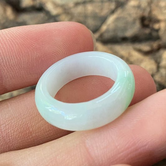 15mm Natural green Grade A jade Narrow Band Ring Natural Real Jadeite Hand carved bead gemstone Burma Lady jadeware rings Type A stone