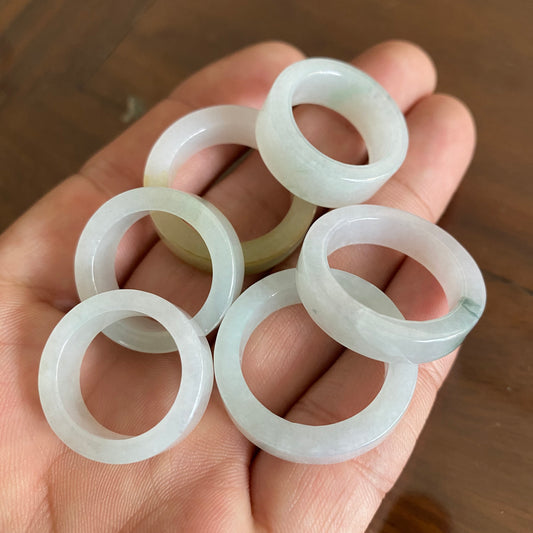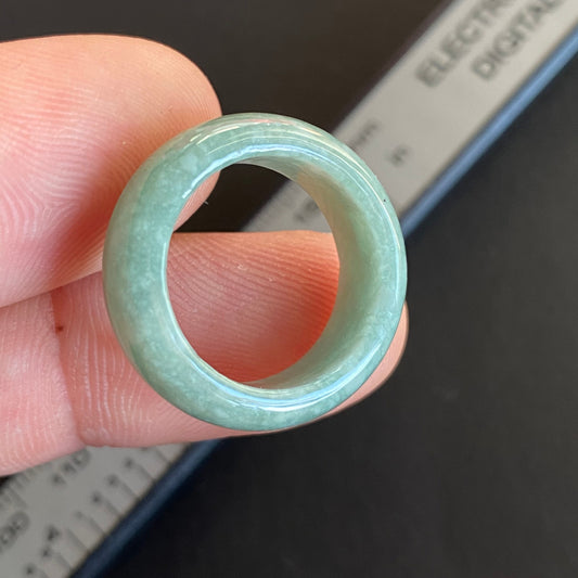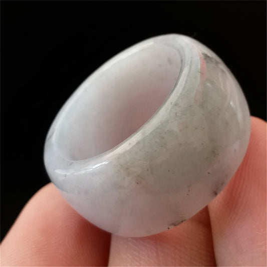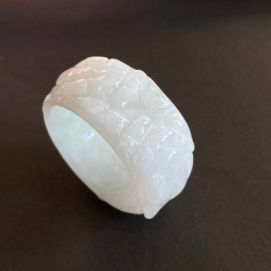 Größe 12, Burma-Jade, breiter Bandring, natürlicher echter Jadeit, handgeschnitzte Perle, Eis-Edelstein, weiße Jade der Güteklasse A, Typ-A-Stein, Feitsui-Perlen 091