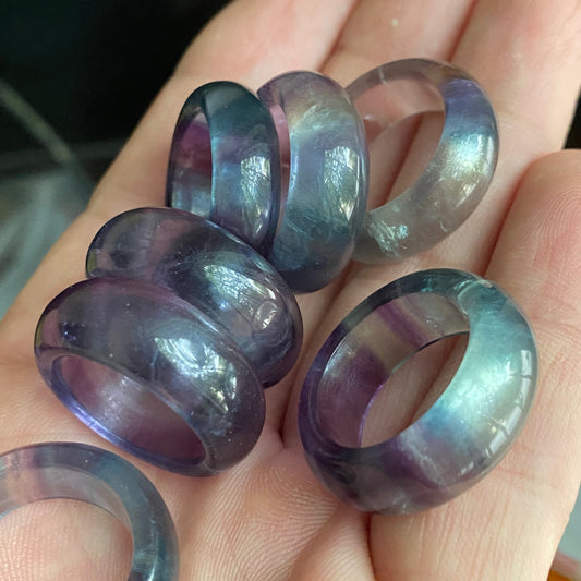 US-Größe 5–10 Nationaler Fluorit-Ring, bunter Jade-Anhänger, transparenter blauer Stein, Damen-Jade-Geschenk