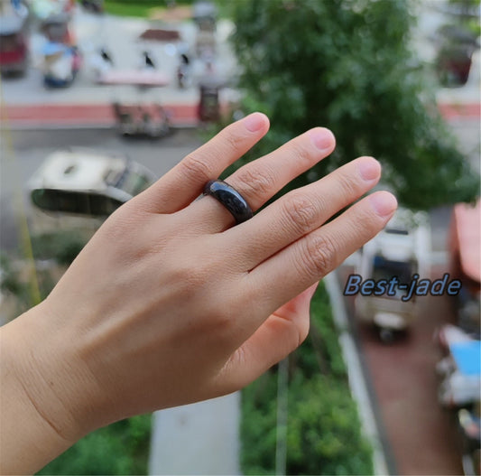 US-Größe 5-11 Schwarz-weißer Jadeit-Bandring Natürlicher Jadeit der Güteklasse A Burma-Jade schwarzer Jadeit-Edelstein Lady Myanmar-Jadeit-Schmuckgeschenk