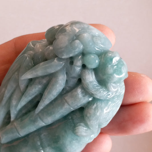 Bamboo Panda Natural Green Jadite Hand held Massage Hand craved Natural Burma Jade BEADS Anhänger Gemstone Hanging Type A stone
