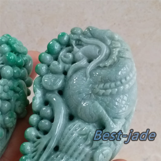 1Pair Unique Natural Green Dragon Hand held Massage Burma Jadeite Grade A Jade A stone 翡翠A货 龙腾虎跃