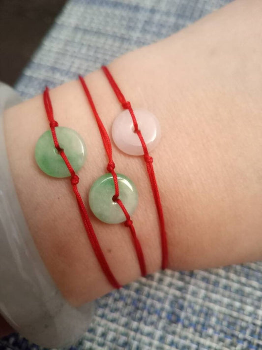 Natural (White) Jadeite Jade Donut Red String Rope Thread Bracelet