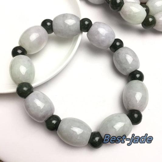 Burma-Jade, Güteklasse A, natürlicher Jadeit, handgeschnitzter Jade-Fass-Perlen-Armreif, Armband, Kette, Burma-Stein, Armband, Schnurseil
